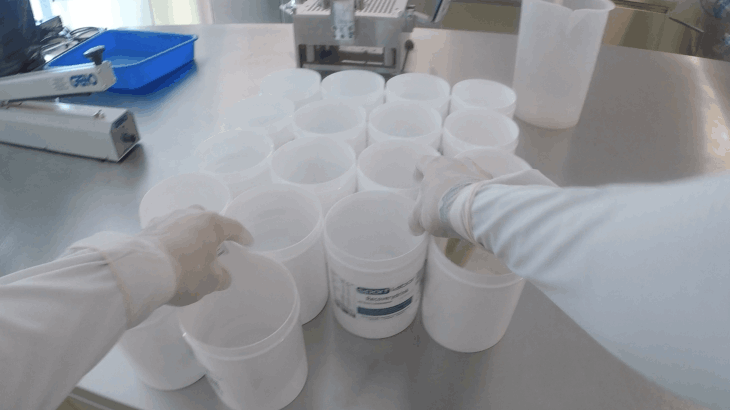 Damit unsere Mischungen homogen werden und keine Verklumpungen aufweisen, werden einige Substanzen gesiebt. Hierbei spielen vor allem die Hykroskopie und die Partikelgröße eine entscheidende Rolle.