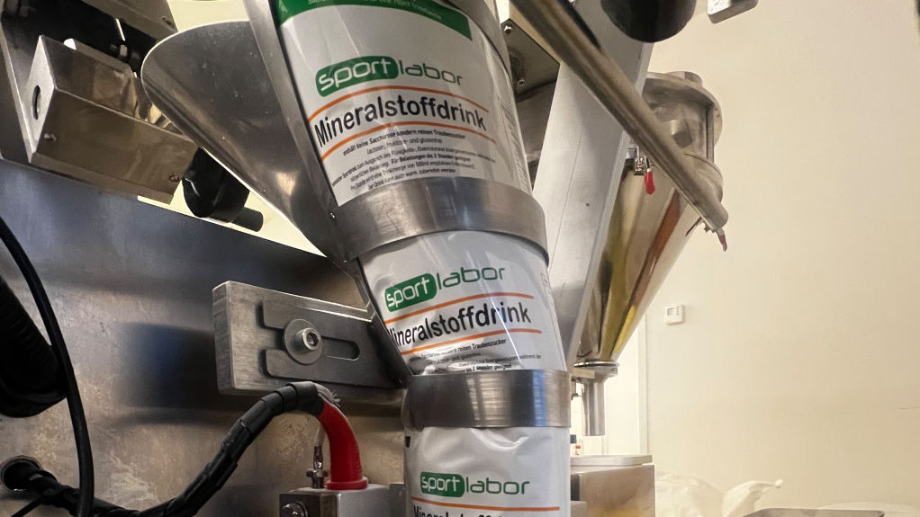 Für Pulver, wie unseren Proteindrink und Recoverydrink verwenden wir unsere Abfüllmaschine, welche eine genaue Dosierung und schnelle Abfüllung ermöglicht.
